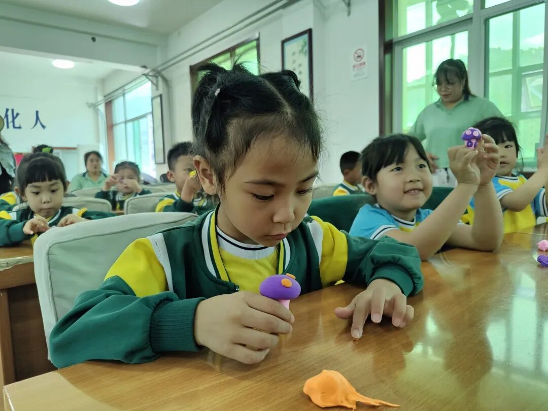 随后,工作人员以生动有趣的方式向孩子们介绍了“彩泥蘑菇”的制作方法,并鼓励孩子们开动脑筋,发挥想象力。在实践环节,孩子们围坐在一起,迫不及待地拿起五颜六色的彩泥,开启了创意之旅。孩子们在创作过程中,相互交流、互相帮助,现场气氛十分活跃。经过一番努力,一件件充满童趣与创意的“蘑菇”诞生了。孩子们自豪地展示着自己的成果,脸上洋溢着满足和喜悦。