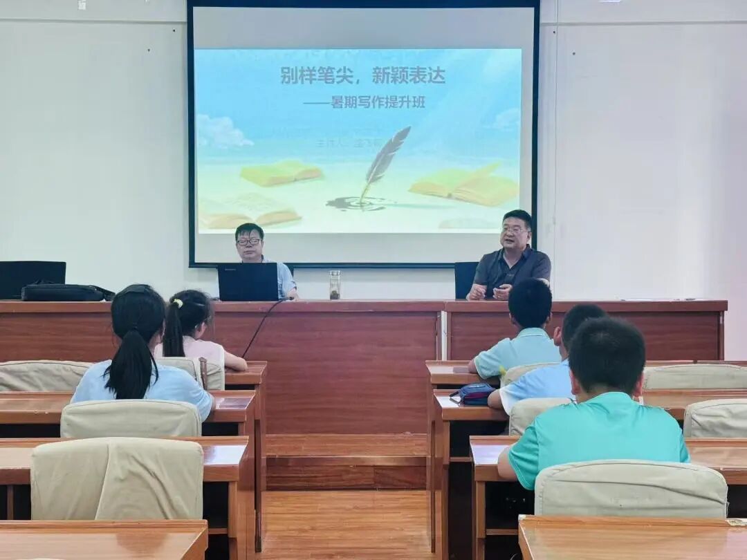 一开课,盛飞鹤老师便以其独特的亲和力迅速拉近了与孩子们的距离,生动分享自己在文学道路上的点滴体会和创作历程。在教学过程中,他分别从阅读的重要性是什么、如何爱上阅读、怎样爱上写作、可遇也可求的灵感和种子萌芽法等五个方面耐心引导孩子们爱上写作、尝试写作等。在互动环节中,盛飞鹤老师及时捕捉孩子们的闪光点,并及时给予表扬和肯定,课堂氛围轻松愉悦。
