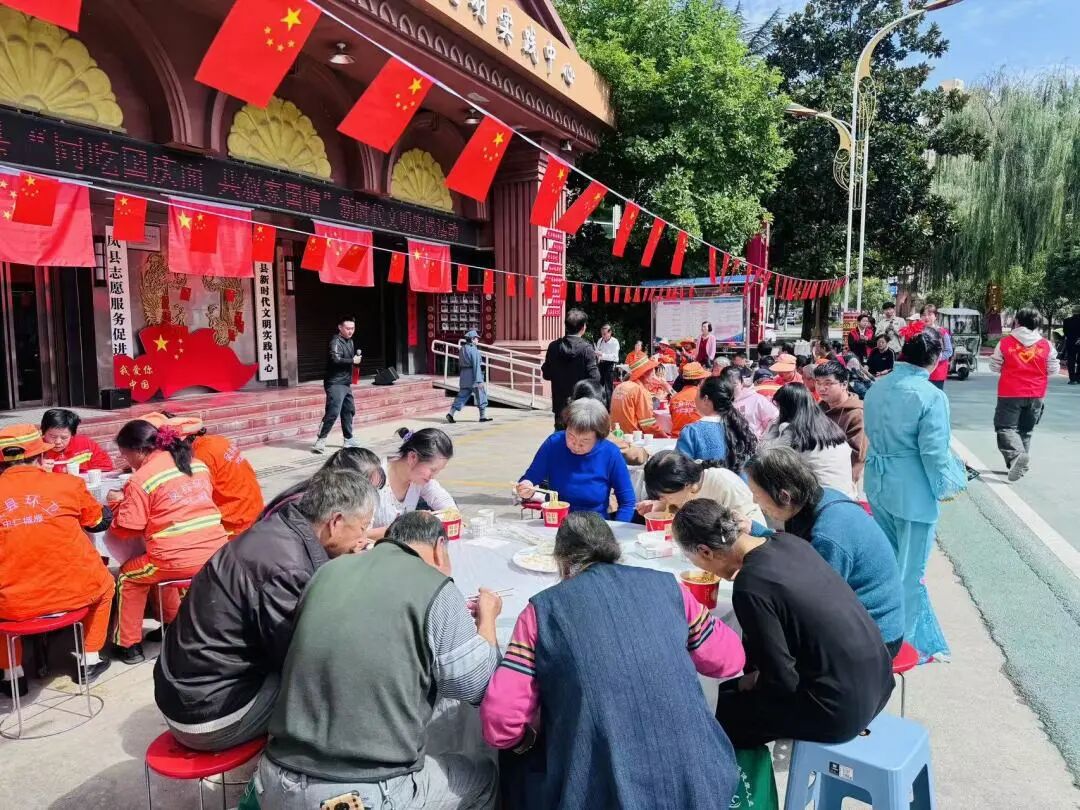 在中华人民共和国成立76周年即将到来之际,恰逢陕西省第十三届阅读文化节开展之时,为传承节日文化、厚植家国情怀,9月28日上午,凤县图书馆联合凤县新时代文明实践中心和凤县中医医院,共同举办“同吃国庆面 共叙家国情”主题实践活动,以“美食+书香”的特色形式,为全县读者送上一场充满温情与意义的国庆盛宴,也为阅读文化节增添了浓厚的节日色彩。