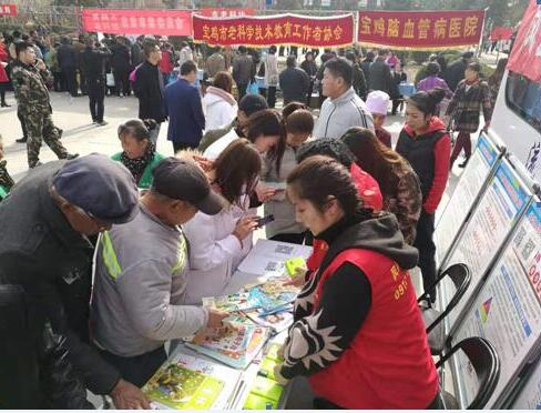2019年3月14日宝鸡市暨凤县文化科技卫生“三下乡”•第二十七届“科技之春”宣传月综合宣传活动在凤州镇新时代文明实践广场举行。凤县图书馆结合服务特色,开展了阅读推广“扫码送书”志愿服务活动,市民只要用手机扫描凤县图书馆微信二维码点击关注,便可获赠杂志一本和抽纸一包。